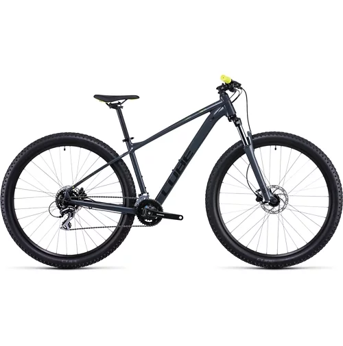 The Aim Pro is a superb hardtail mountain bike that’s ideal for newcomers to the sport and more experienced riders alike. Optimised to ensure you can get the most from off-road riding, it features an Aluminium Lite frame with modern enduro-inspired geometry for a strong, agile and lightweight performance over mixed terrains. Plus, it’s fitted with a Shimano 3×8-Speed drivetrain, Tektro hydraulic disc brakes and a fast-rolling wheel/tyre combo from Cube. This bike is ideal for fast trail riding, steep climbs and long days in the saddle.