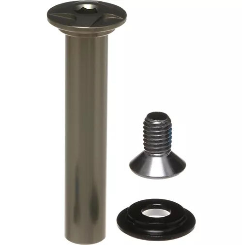This V-Link Seatube Pivot Kit is to replace the bolt, washer, spacer and threaded element of the main pivots of the suspension linkage on all Vitus Mythique 27 and 29 frame models.